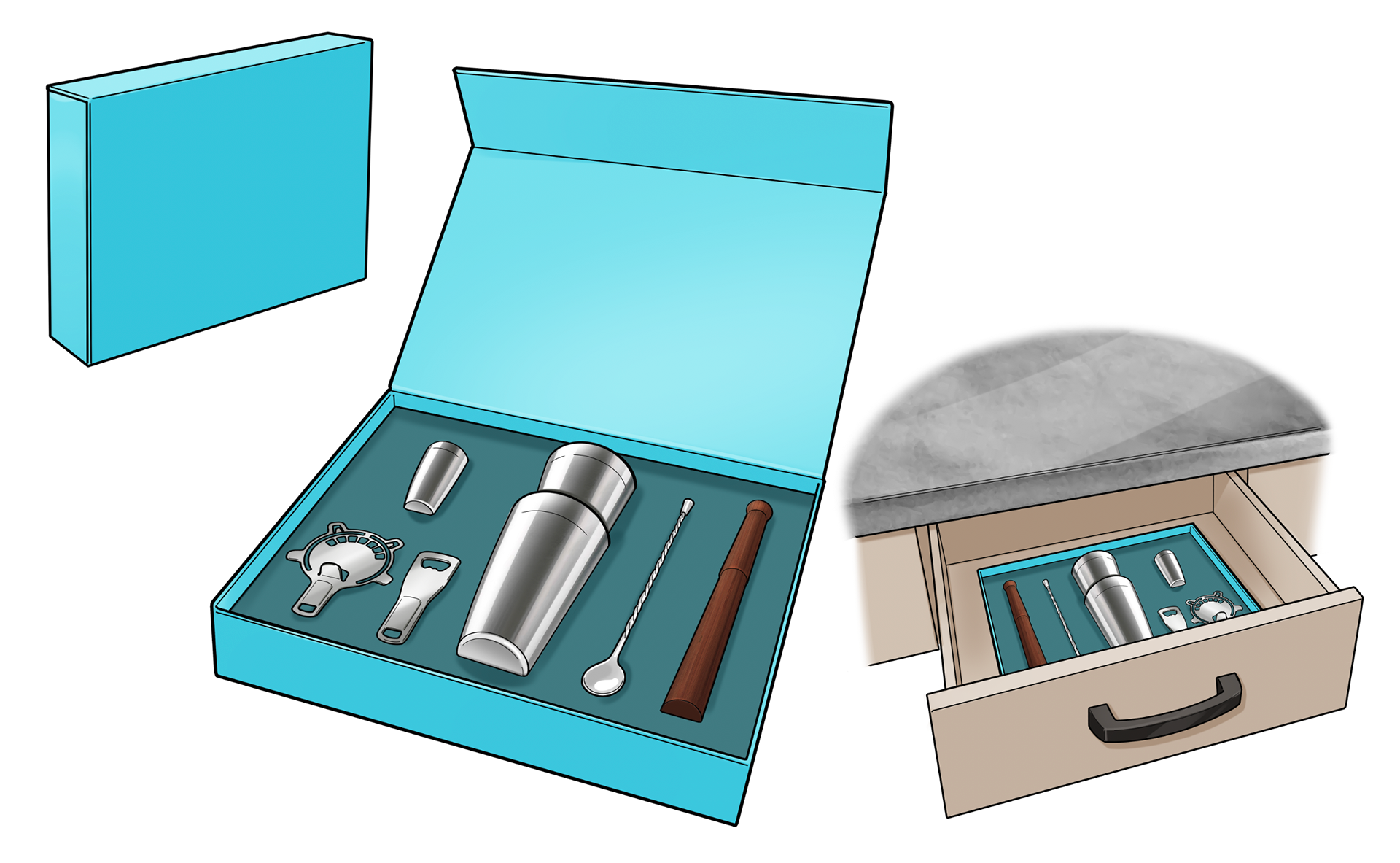 Packaging/organization concepts that doubled as lasting, high end presentation containers.