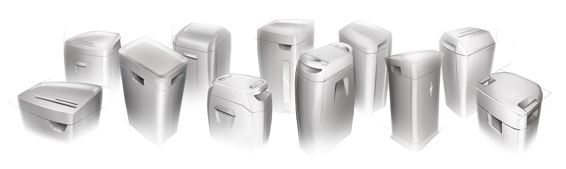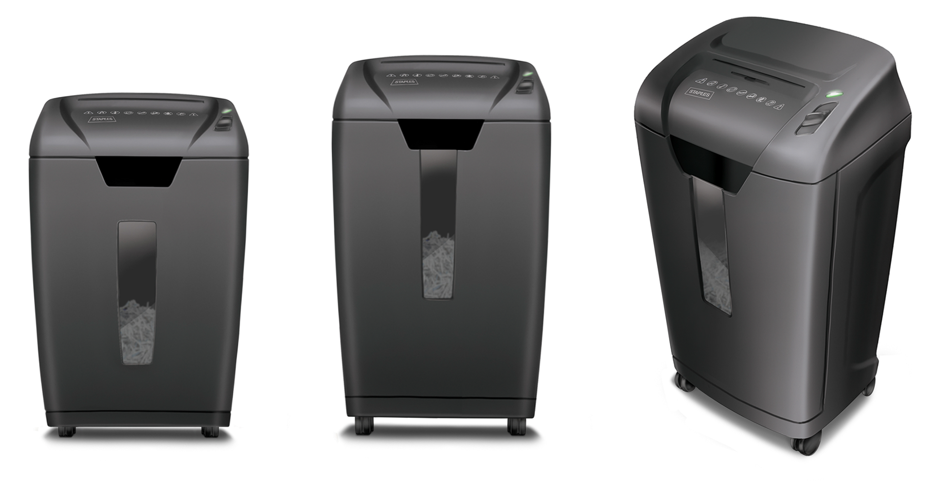 Staples via TTI (Dirt Devil, Hoover, etc.) were looking for a new aesthetic direction for a medium price point paper shredder. My role was form development (TTI wanted to source the CAD overseas). What you see below is the form they chose to pursue.