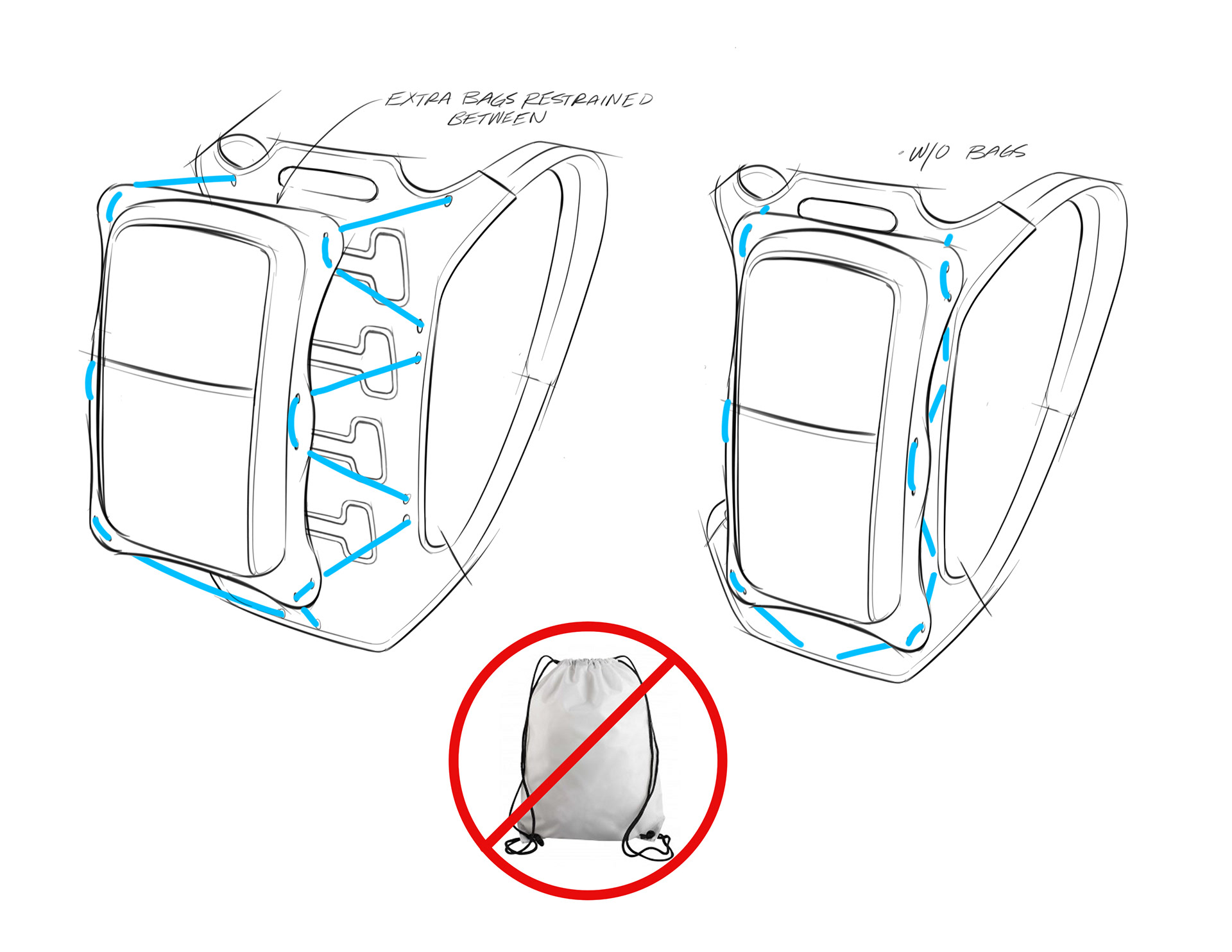The discovery process led me from a panel with slots, to a hard shell backpack, to the eventual adaptation – a simple bracket.